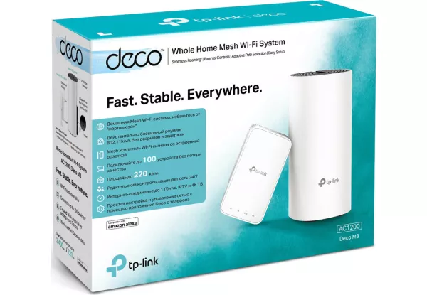 Дополнительно | Родительский контроль, Приоритизация данных (QoS), Месячные отчёты, Автообновление прошивки, Увеличение зоны Wi-Fi путём добавления устройств Deco Beamforming: поддерживается Мобильное приложение: простая настройка с помо |