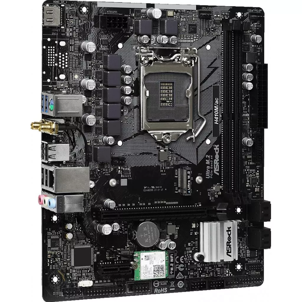 AsRock H410M/AC - материнская плата для настольной платформы LGA 1200. Предназначена для установки процессоров Intel 10-го поколения. Выполнена в форм-факторе micro ATX, поэтому подходит для сборки небольшой офисной или домашней системы. Предусмотрено 2 слота для оперативной памяти типа DDR4 и эффективной частотой 2933 МГц.