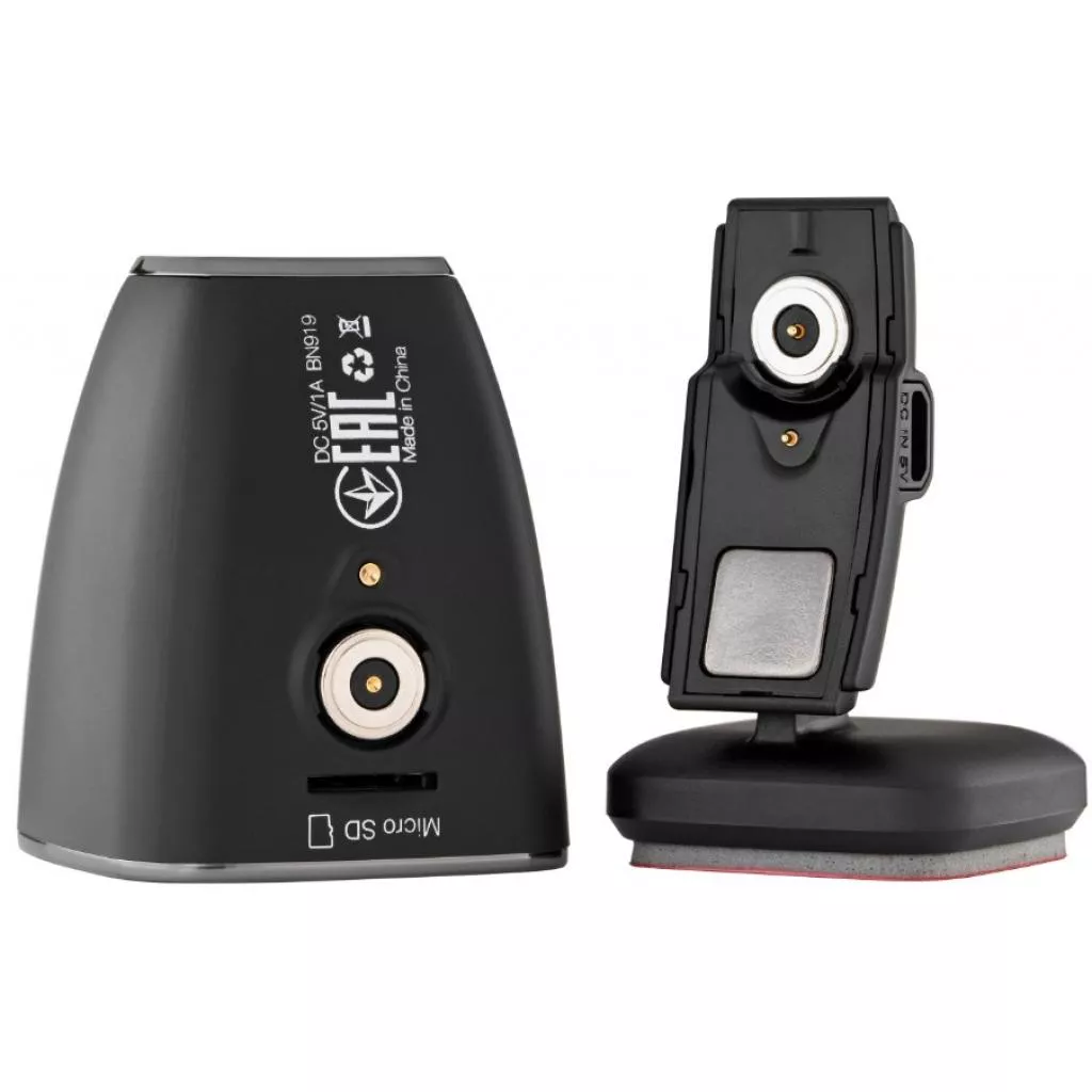Видеорегистратор с магнитным креплением, Full HD-записью, матрицей Sony IMX 323, дисплеем, удобным интерфейсом управления, а также модулями Wi-Fi и GPS, который интегрирован в держатель. Для управления библиотеками видео и фотоматериалов доступны приложения в Google Play и AppStore. Устройство оснащен и укомплектовано объективом с инфракрасным фильтром, микрофоном, динамиком и датчик (индикатор)ом G, который реагирует на удары и защищает фрагменты видео ДТП от перезаписи.