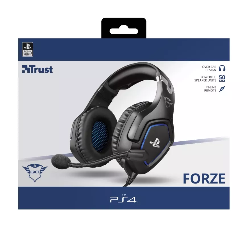 GXT 488 Forze PS4 – официально лицензированный продукт для Sony PlayStation. Мощный дизайн наушников идеально соответствует стилю PS4. 50-миллиметровые активные динамики с многими и удобными накладками. Сложный гибкий микрофон и регулируемое усиленное обнажение. Встроенный пульт дистанционного управления громкостью и отключением микрофона. Просто подключите гарнитуру к беспроводному контроллеру. li>Длина кабеля 1,2 м