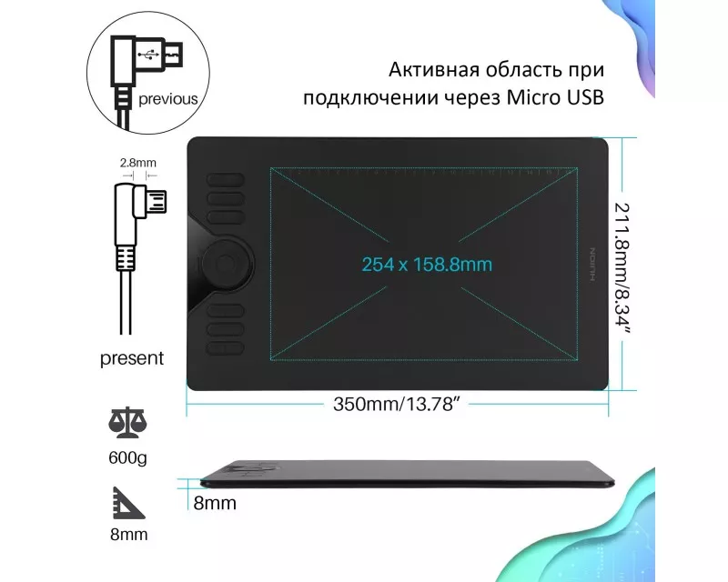 | Интерфейсы | MicroUSB (планшет), USB/(ПК) |