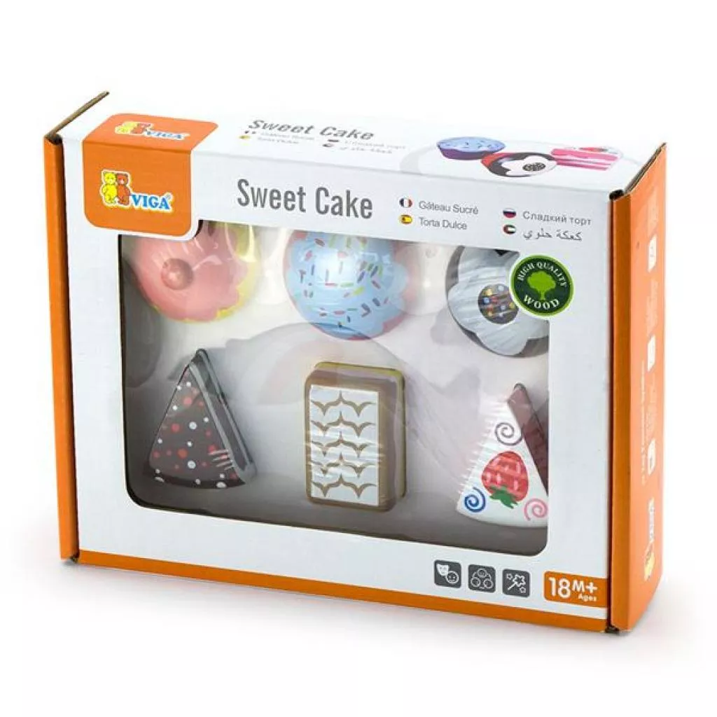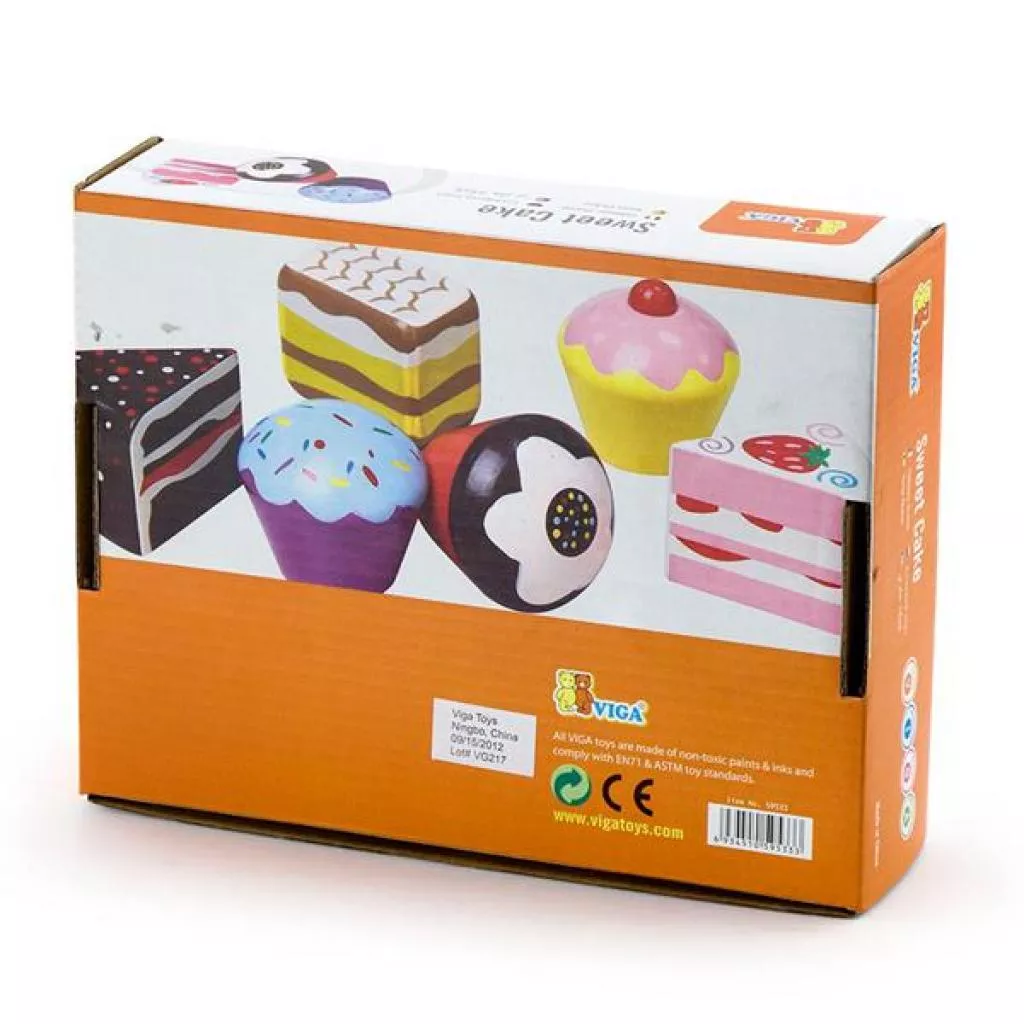 Набор кулинара Viga Toys Пирожные в виде 6 разноцветных десертов, изготовленных из массива дерева и раскрашенных вручную.Игровой набор с деревянными пирожными заинтересует малышей от 18 месяцев. Они будут вертеть в руках разноцветные формы, рассматривать их, делиться «пирожными» с родными. С таким набором ребенок может легко представить себя кулинаром.Для изготовления использована качественная древесина и безопасные красители. Все края и детали тщательно отшлифованы. Набор соответствует стандартам безопасности и качества: европейскому EN71, американскому ASTM, как и вся продукция Viga Toys. Размер коробки: 21х16х5,5 см.Игра с набором развивает: воображение, цветовое восприятие, эмоциональное благополучие. Подходит для ролевых игр.