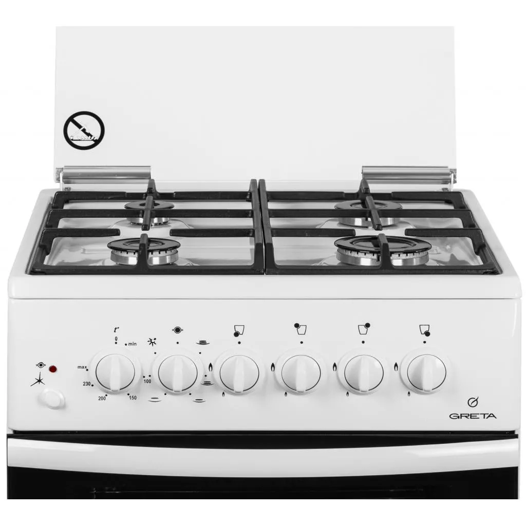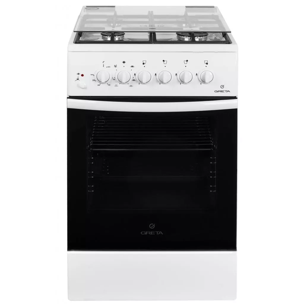 Печь кухонная Greta 1470-ГЭ-09 по типу относится к комбинированным, так как ее варочная панель работает от газа, а духовка – электрическая. Печка имеет классический приятный дизайн, она покрыта яркой износостойкой эмалью. Стеклянная крышка модели придает ей элегантный вид. Внизу производители предусмотрели выдвижной ящик для посуды. Регулируемые ножки позволят вам найти устойчивое положение оборудования даже на не идеально ровном полу.