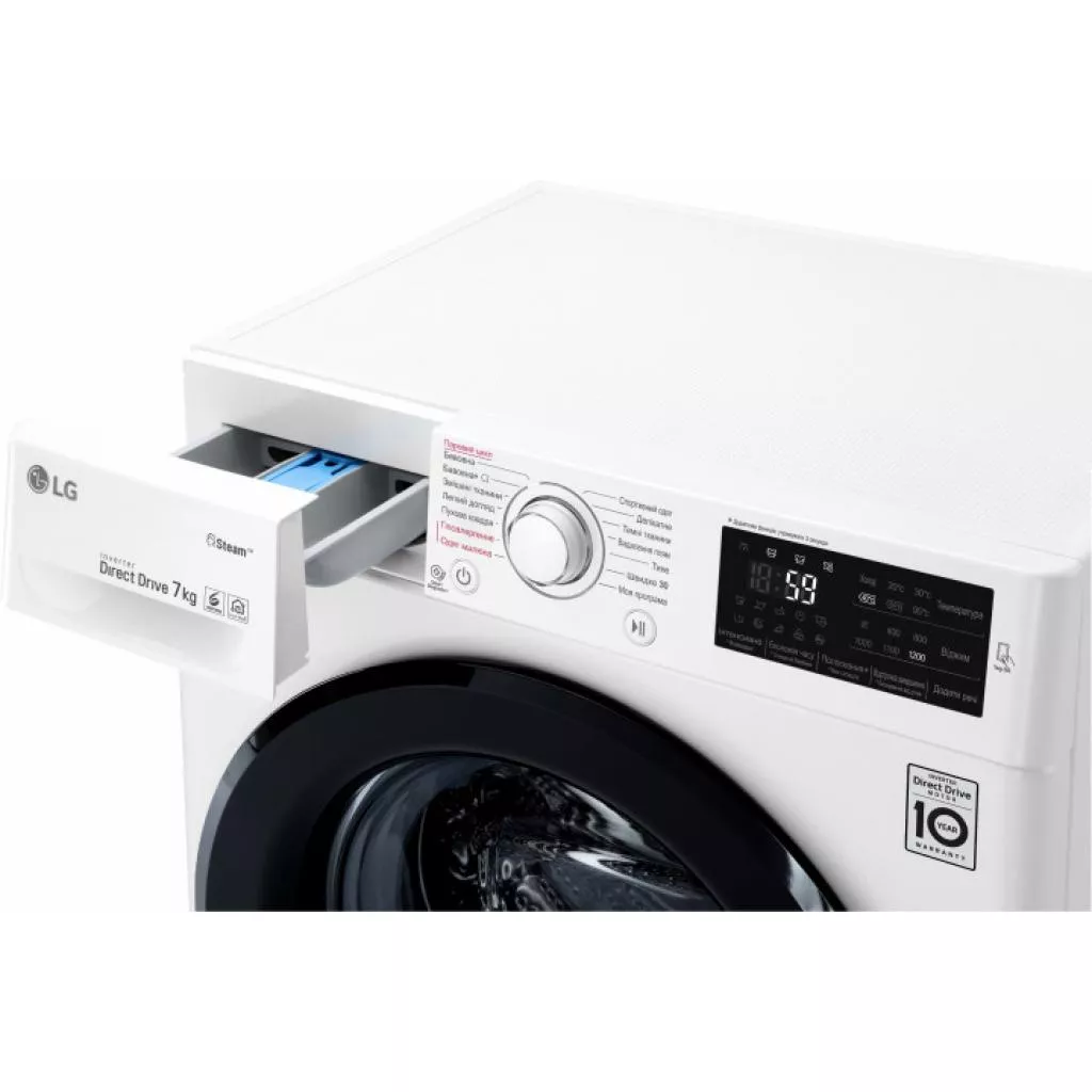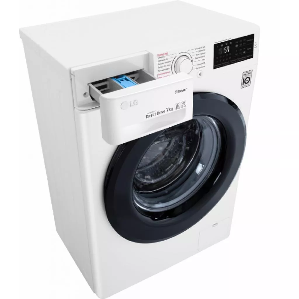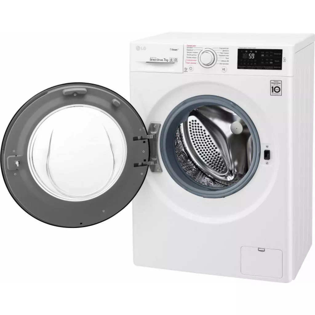 Стиральная машина LG F2J5HS6W имеет фронтальное строение, при котором люк располагается на передней панели. Он размещен очень удобно и имеет большой диаметр, чтобы вы могли комфортно расположить внутри белье. Общая вместительность барабана составила 7 кг.