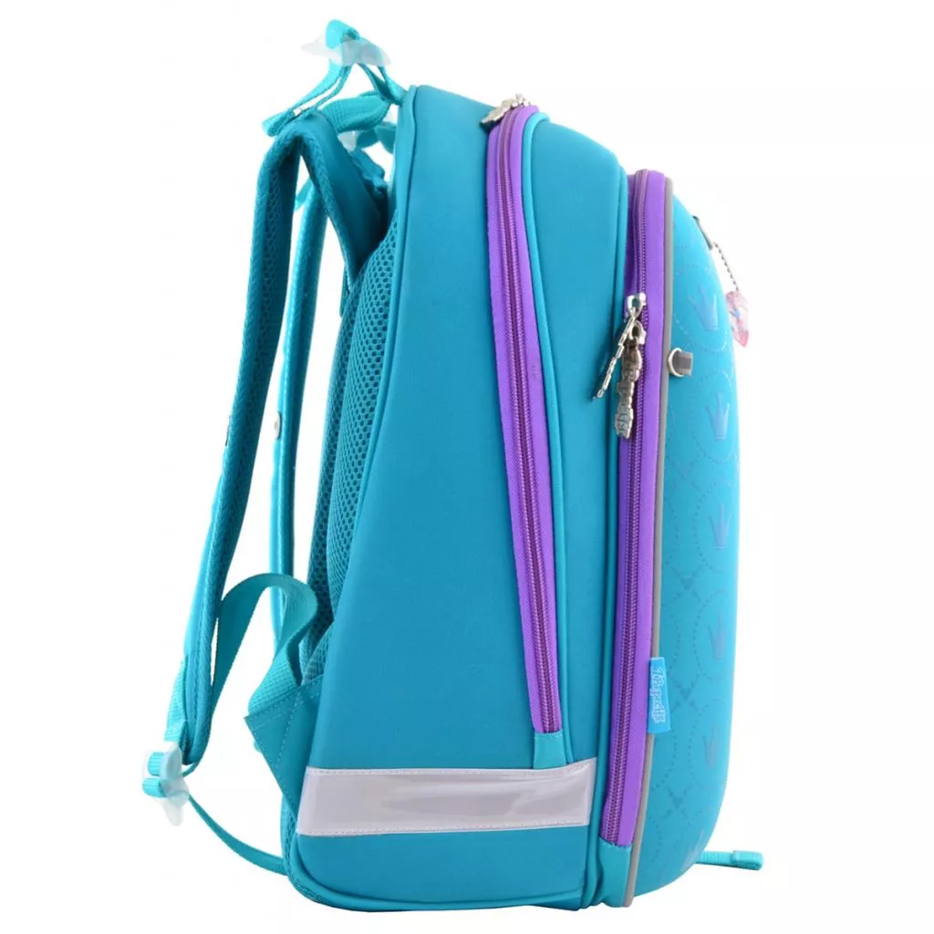 Плотный жесткокаркасный рюкзак на два отделения. Передняя панель выполнена в виде «панциря», который не деформируется при легком давлении, сохраняя форму даже при неравномерной загрузке рюкзака. «Панцирь» выполнен из плотного EVA-материала. Рюкзак повторяет форму позвоночника, препятствует его искривлению, способствует формированию правильной осанки. Уникальная система крепления лямок дает возможность выставить максимально и в полном объеме комфортную высоту по спине ребенка. Есть дополнительная фиксация лямок с помощью нагрудного ремня. 1 потайной карман с сеточкой для бутылки с водой и других личных вещей. Наличие отделения для лэптопа, органайзера, телефона. 6 светоотражающих элементов. Усиленное дно с защитными ножками.