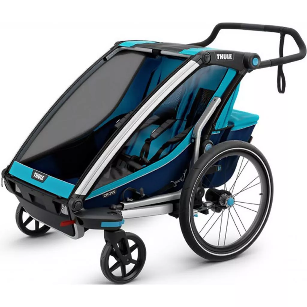 Thule Chariot Cross 2 — мультиспортивная, крепкая и вместительная коляска для одного или двух детей, которая может соответствовать множеству ежедневных семейных потребностей.
