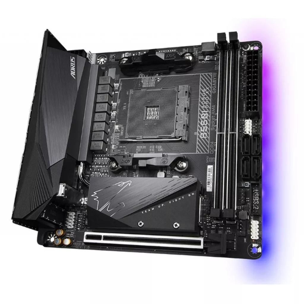 Soc - AM4, AMD B550, DDR4, Макс. память - 64 ГБ, Внешние - 1 x USB 3.2 Gen2 Type-C, 1 x USB 3.2 Gen2, 2 x SMA antenna connectors (2T2R), 4 x USB 3.2 Gen1, 1 x RJ45, 1 x HDMI, 1 x DisplayPort, 3 x Audio, Внутренние - 2 x M.2 Socket 3, 4 x Sata 6.0 Gb/s, Bluetooth 5.0, Wi-Fi (IEEE 802.11 a/b/g/n/ac/ax), Mini ITX, BOX