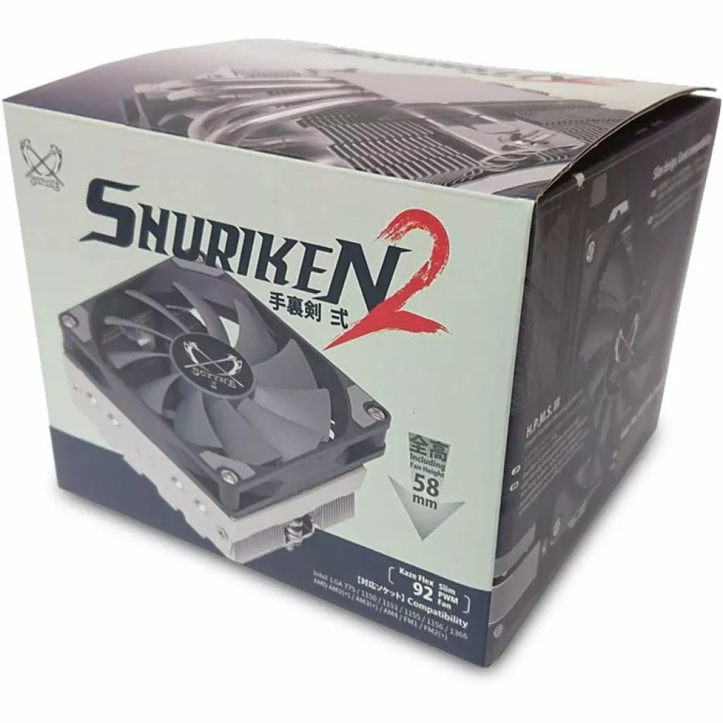 Компания Scythe представила низкопрофильную процессорную систему охлаждения Shuriken 2 SCSK-2000. Высота новинки — всего 58 мм (с вентилятором), что делает ее подходящей для компактных настольных систем на платах типоразмера mini-ITX. При этом SCSK-2000 может справиться с довольно высокой тепловой нагрузкой — охладитель подходит для процессоров с TDP до 100 Вт.