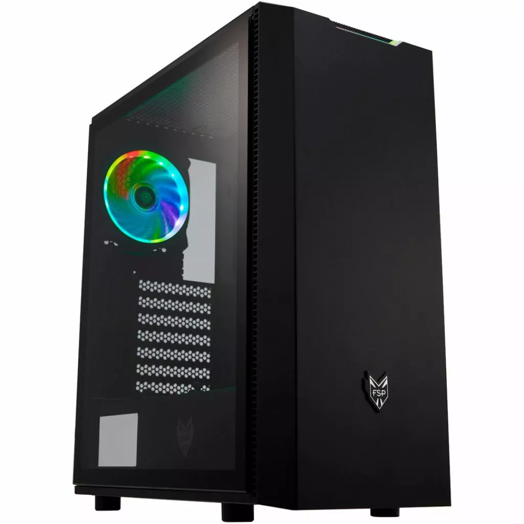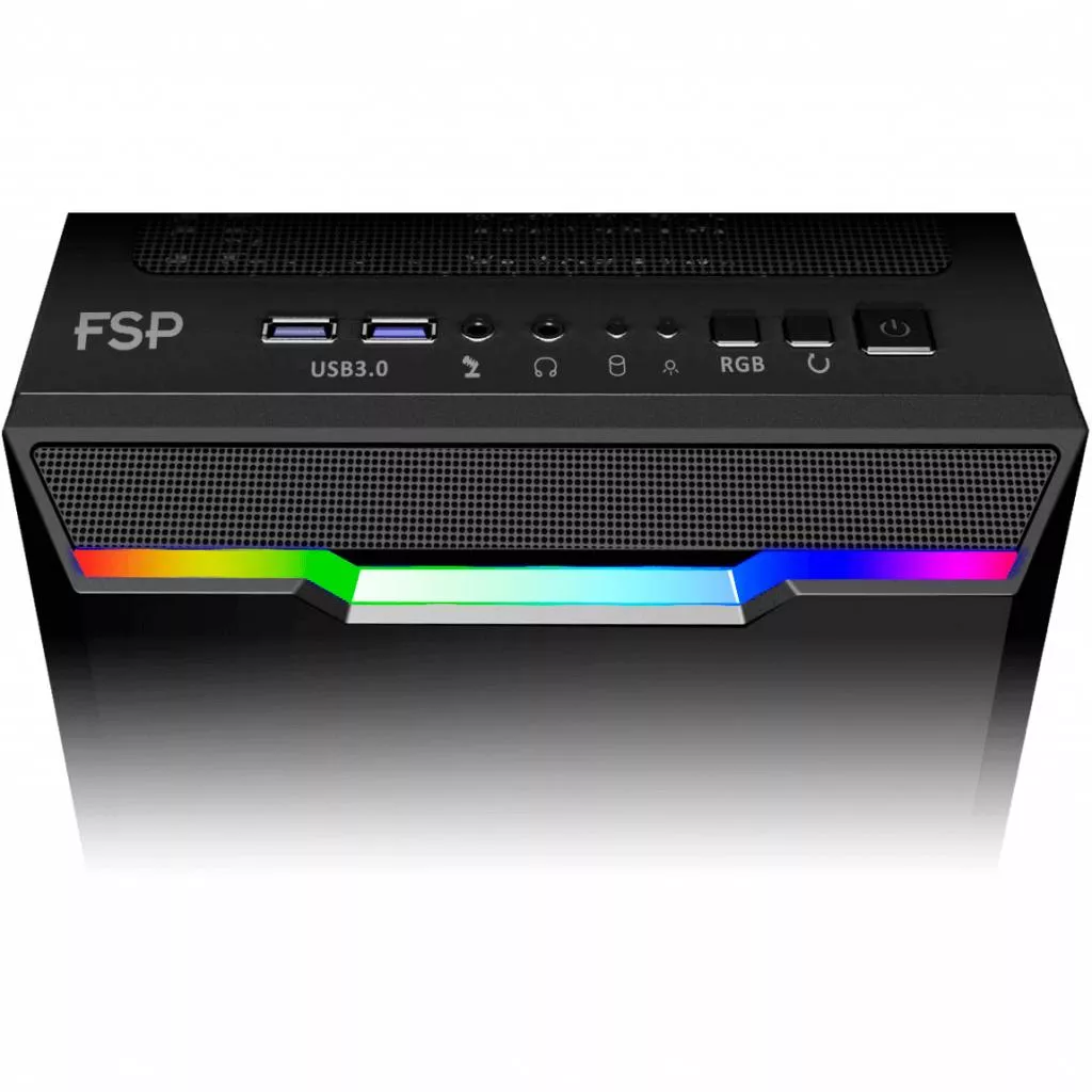 FSP CMT350 — компактный корпус типа mid-tower с возможностью оснащен и укомплектования 360 мм радиатором. Он имеет прочную стальную раму SPCC с черным покрытием и поддерживает широкий спектр радиаторов 120/140/240/360 с жидкостным или воздушным охлаждением. Вентилятор на задней панели имеет подсветку, что адресуется, и совместим с ASRock Polychrome Sync, Asus Aura Sync, Gigabyte RGB Fusion и MSI Mystic Light Sync. Стеклянная боковая панель CMT350 вместе RGB-подсветкой на передней панели придает корпусу геймерского шика. Кроме широкой поддержки опций охлаждения, корпус оснащен и укомплектован двумя отдельными фильтрами пыли, чтобы поддерживать систему в чистоте. Корпус поддерживает БП типа Mini-ITX, MicroATX и материнские платы обычного размера ATX (7 слотов PCI).