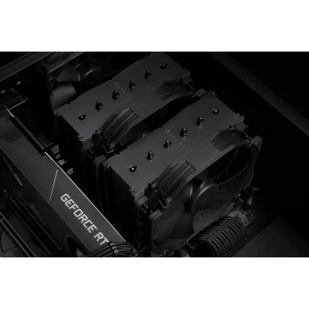 NH-D15 chromax.black - полностью черная версия отмеченной наградами флагманской модели NH-D15 — тихого процессорного кулера премиум-класса от Noctua. Благодаря той же проверенной конструкции радиатора с двумя башнями и вентиляторам NF-A15 HS-PWM chromax.black, он остается верным успешной формуле NH-D15, позволяющей конкурировать с характеристиками универсальных систем водяного охлаждения при сохранении превосходной бесшумности работы.
