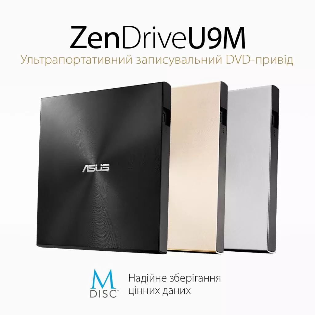ASUS ZenDrive U9M – это внешний записывающий DVD-привод, выполненный в тонком корпусе с отличительным дизайном в стиле Zen. Благодаря поддержке интерфейсов USB Type-A и Type-C, его можно легко подключить к любому современному компьютеру.