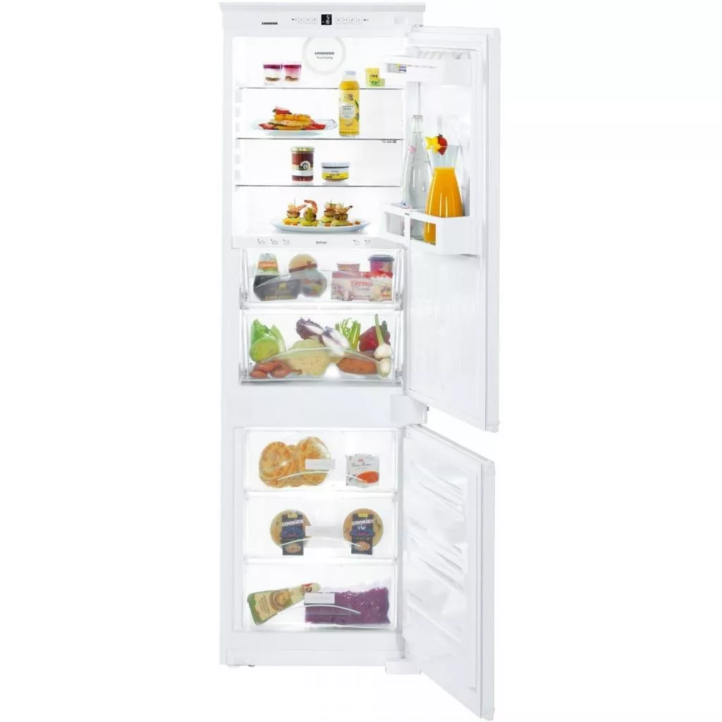 Встраиваемый холодильник Liebherr ICBS 3324 выполнен на две камеры. Он располагает 194 литрами полезного объема (284 л – общи показатель), работает с одним инверторным компрессором, расходуя минимальное количество энергии. Этому способствует высокий класс энергопотребления А++. Модель оборудована динамической системой размораживания холодильной камеры и статической системой размораживания камеры морозильной. В работе использует систему SmartFrost, которая предотвращает образование инея, предлагая больше полезного пространства для работы.