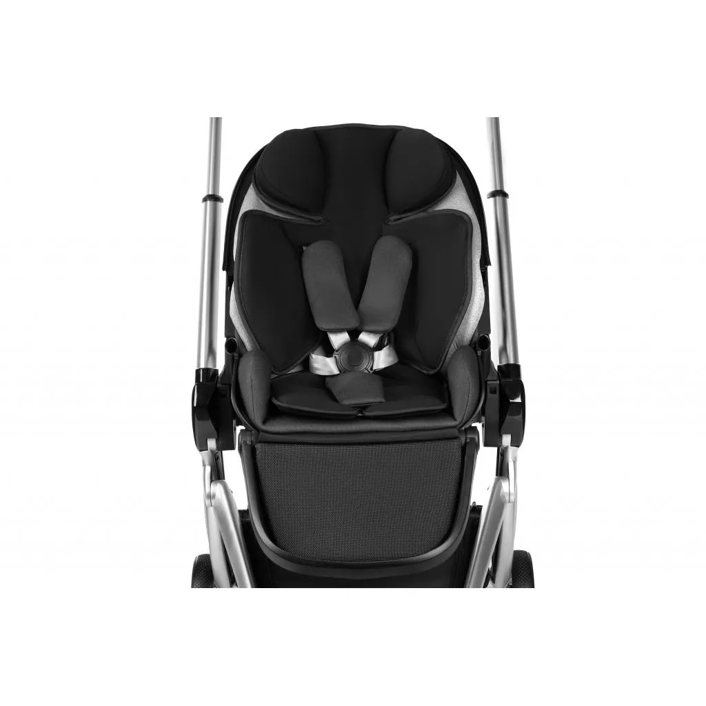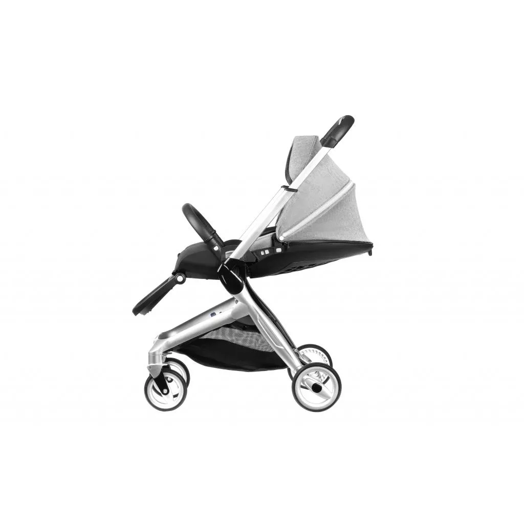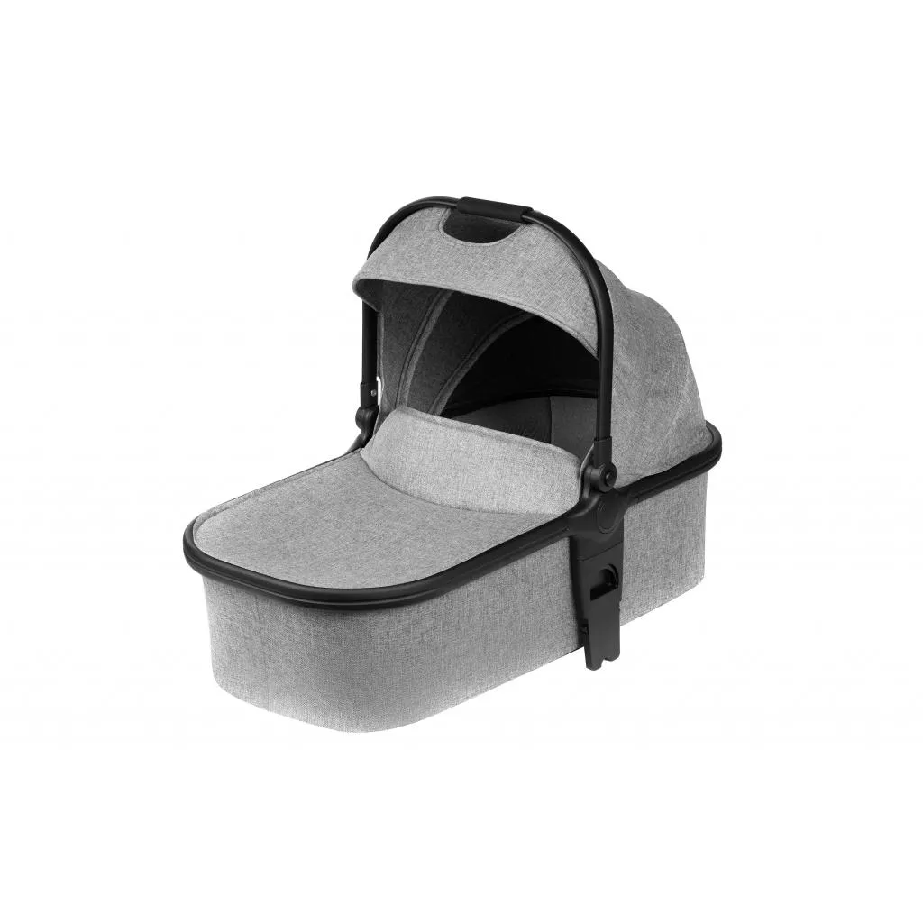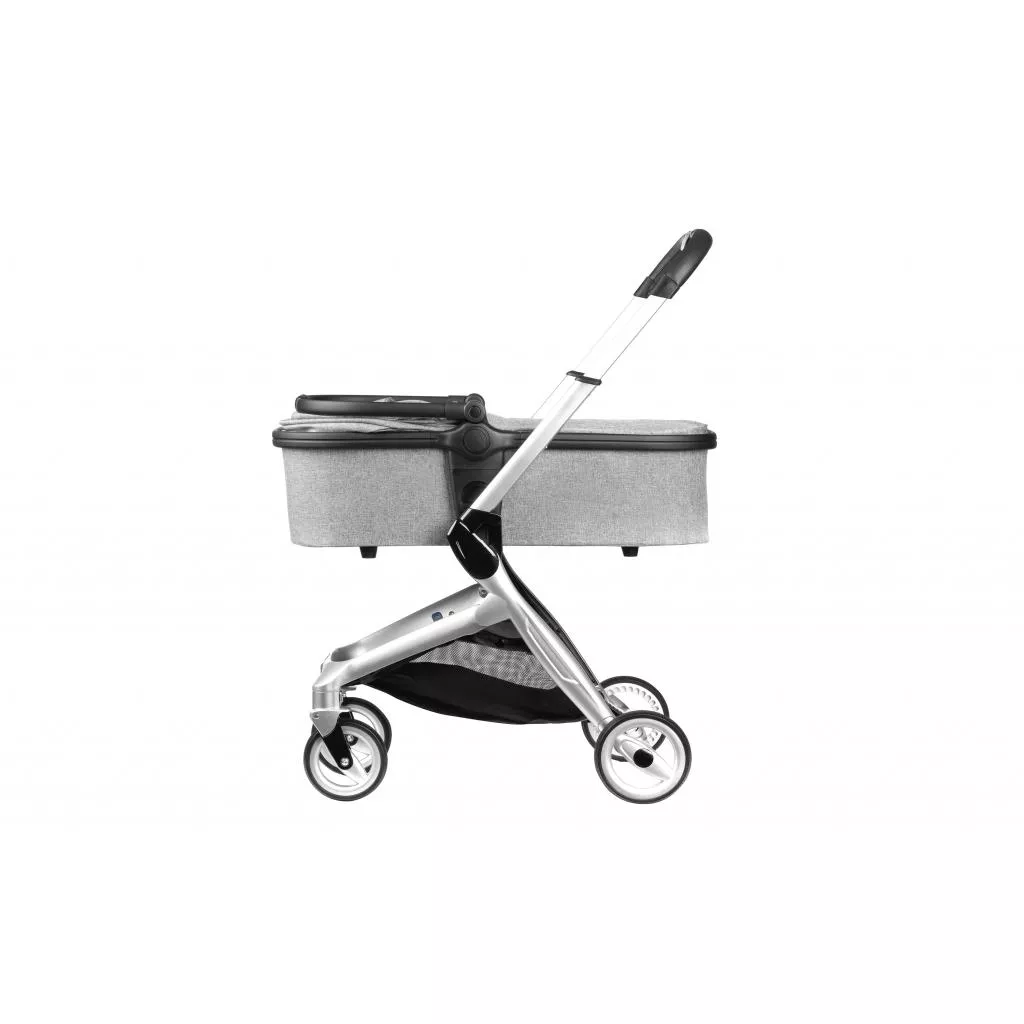Люлька выполнена по традиционной конструкции с металлическими основаниями и текстильными вставками в сдержанном дизайне. Капюшон оснащен и укомплектован ручкой для переноски, а также отворачивающимся сегментом для вентиляции. Чехол на ножки закрепляется на молнии. Ортопедический матрас выполнен из плотного материала и специально разрабатывался с учитыванием всех требований по перевозке младенцев. Внутренняя часть люльки обрамлена тканью с мягким наполнителем