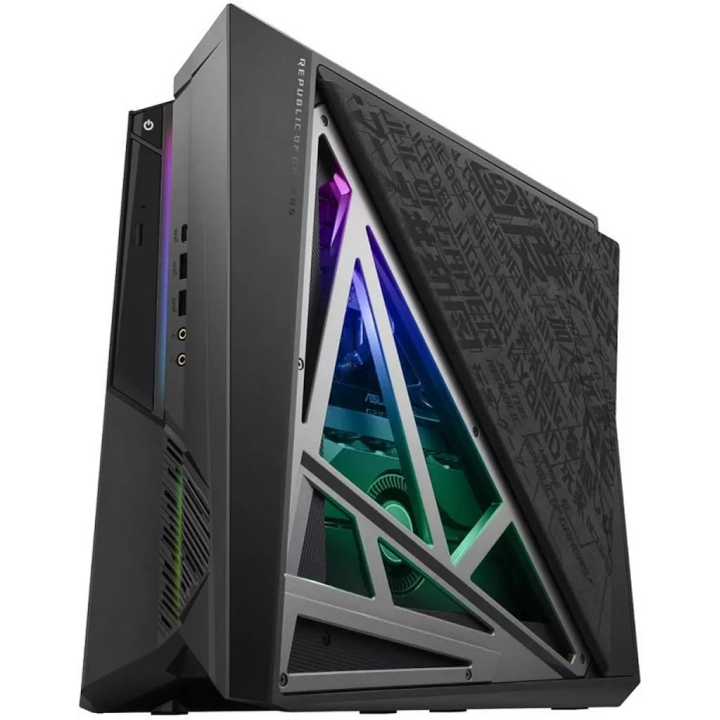 Одного взгляда достаточно, чтобы понять уникальность компьютера ROG Huracan. Боковая панель его корпуса оснащен и укомплектована удобным магнитным креплением и в открытом состоянии улучшает вентиляцию, позволяя процессору и видеокарте работать на максимально и в полном объемей скорости. Дополнительное охлаждение будет весьма кстати, ведь внутри этого компактного устройства находятся мощнейшие компоненты: процессор Intel Core девятого поколения и видеокарта NVIDIA GeForce RTX. Такая конфигурация легко обеспечит плавную картинку в современных играх даже при экстремально высоких настройках качества изображения.