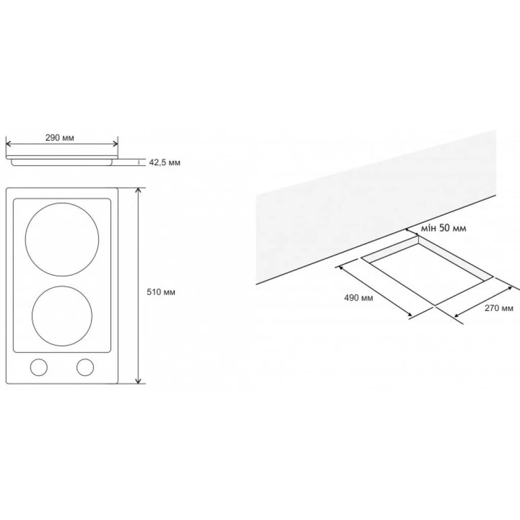 Диаметр и мощность конфорок | Задняя 2 кВт, Передняя 1 кВт |