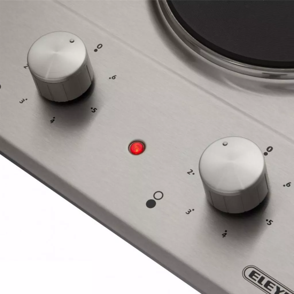 Eleyus GERDA 301 IS H оснащен и укомплектована двумя конфорками – 145 мм в диаметре и 1200 Вт мощности, а также 180 мм диаметром и 2000 Вт мощности. В качестве нагревательного элемента используются чугунные нагревательные диски. Чугун является стойким к прогоранию и крепким материалом, который долго хранит тепло. Своей максимально и в полном объемей мощности такие конфорки достигают уже через 15 секунд после включения. Каждая конфорка имеет шесть уровней нагрева.