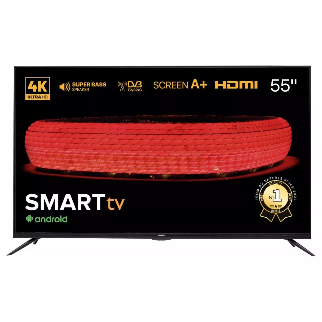 Компания Satelit представляет один из «умных» телевизоров с большим экраном в 55 дюймов: модель 55U8000ST — инновационное устройство с впечатляющим качеством картинки. Satelit 55U8000ST радует смарт-возможностями под началом операционной системы Android 7.0, стильным дизайном и расширенным перечень функций и возможностейом по очень заманчивой цене. Устройство Satelit 55U8000ST воспроизводит видео в сверхвысоком разрешении 4k или Ultra HD (3840х2160), что приравнивает качество изображения к реальному.