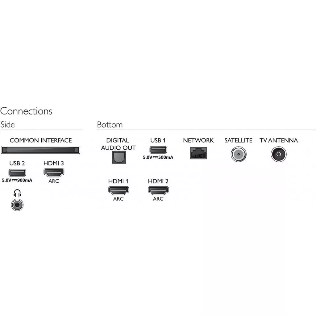 | Интерфейсы подключения | 1 х RJ-45, 3 х HDMI, Headphone, 1 х оптический аудио, 2 х USB, CI, антенный |