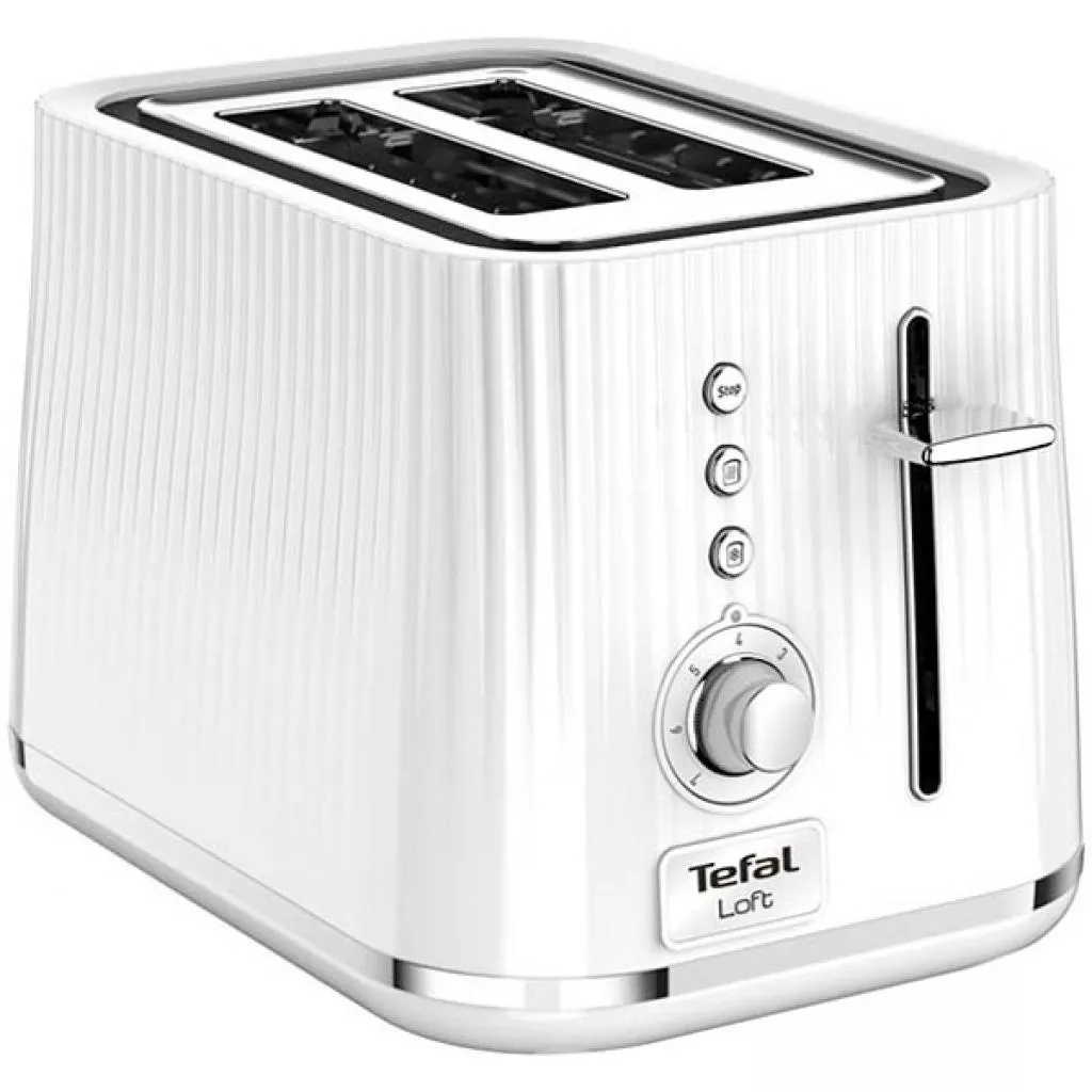 Тостер Tefal TT761138 обладает стильной внешностью, которая была навеяна создателям видом британской керамической посуды – такой же лаконичной и аккуратно оформленной. Светлый корпус имеет фактурные грани, которые преломляют свет и красиво перекликаются с тенью. Элементы управления имеют хромированное покрытие, за счет чего их фактура отличается от основы, создавая продуманный контраст.