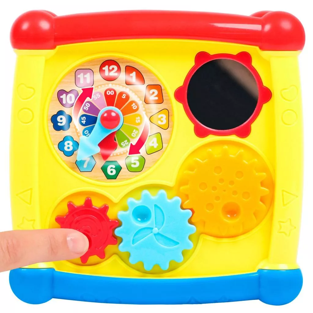 •  на сторонах куба размещены отверстия для формочек, часы, шестерня, безопасное зеркальце, рельефное дерево с буквами;
