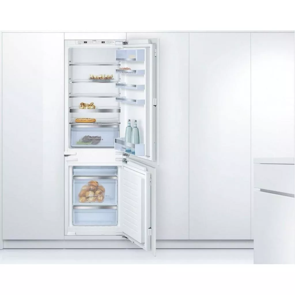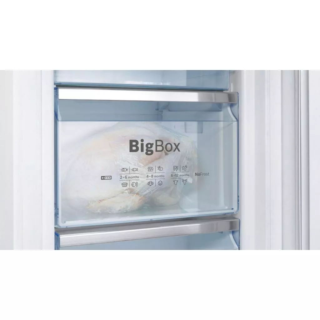 Холодильник с нижней морозильной камерой с зоной VitaFresh plus: до двух раз более длительное сохранение свежести фруктов и овощей - высокая энергоэффективность класса A++.VitaFresh plus: до двух раз дольше сохраняет свежесть продуктов – благодаря более низкой температуре для рыбы и мяса и регулируемой влажности для фруктов и овощей. Светодиодная подсветка: равномерное освещение холодильной камеры без бликов на протяжении всего срока службы прибора. VarioZone: гибкие возможности использование (эксплуатации) стеклянных полок и ящиков в морозильном отделении. Автоматическое суперзамораживание: оптимально для замораживания небольшого количества свежих продуктов и защиты уже находящихся в морозилке продуктов от размораживания благодаря автоматическому отслеживанию повышения и улучшения температуры и снижению ее до необходимого уровня.NoFrost: больше никакого размораживания благодаря идеальной защите от образования льда - экономия времени и усилий.