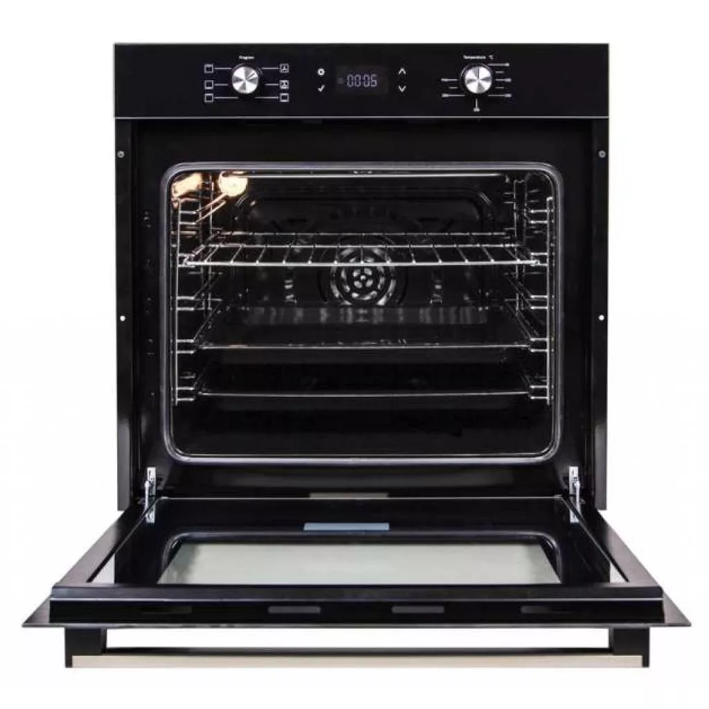 Современная и очень красивая электрическая духовка SIENA 6 TC (BK) – настоящая находка для кухонь в темных и контрастных цветах. Благодаря элегантному черному цвету фасада, а также красивому сенсорному дисплею, духовка имеет очень шикарный внешний вид устройства. И, как говориться, выглядит «по-богатому».Фасад выполнен из прочного черного стекла, а внутренняя камера – из эмали легкой очистки. Поэтому уход за духовкой будет максимально и в полном объеме простым и быстрым. При этом сама камера имеет объем целых 70 литров, что дает возможность одновременно готовить два объемных блюда. Одно условия – блюда должны быть однородными.Управление выполнено таким образом, чтобы приготовление любимых блюд было комфортным и быстрым. Для этого Вам доступны удобные круглые ручки, которые утапливаются в фасад и сенсорный дисплей.