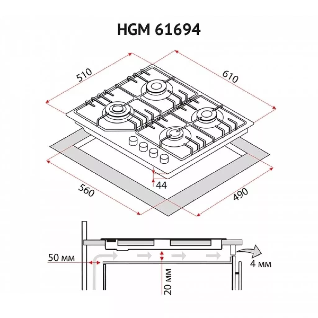 Размеры ниши для встраивания | 56 х 49 х 4.4 см |