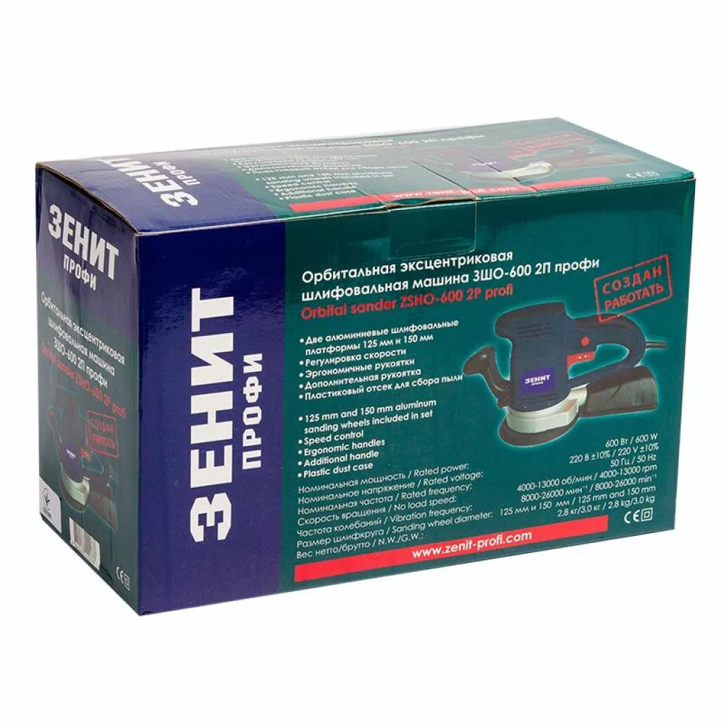 Орбитальная эксцентриковая машина шлифовальная Зенит ЗШО-600 2П Профи является полу профессиональным электроинструментом предназначенным для открытых плоских поверхностей деревянных, пластиковых и металлических деталей, в том числе грунтовым и лакокрасочным покрытием, а также со следами последствий коррозии металла. Одним из немаловажных преимуществ орбитальной шлиф машины ЗШО-600 2П является возможность смены и использование (эксплуатации) шлиф кругов диаметром 125 и 150 мм, которыми комплектуется данное изделие. В данной модели предусмотрена регулировка скорости (частоты колебаний) для установки оптимального режима с помощью регулятора расположенного на пусковой кнопке.