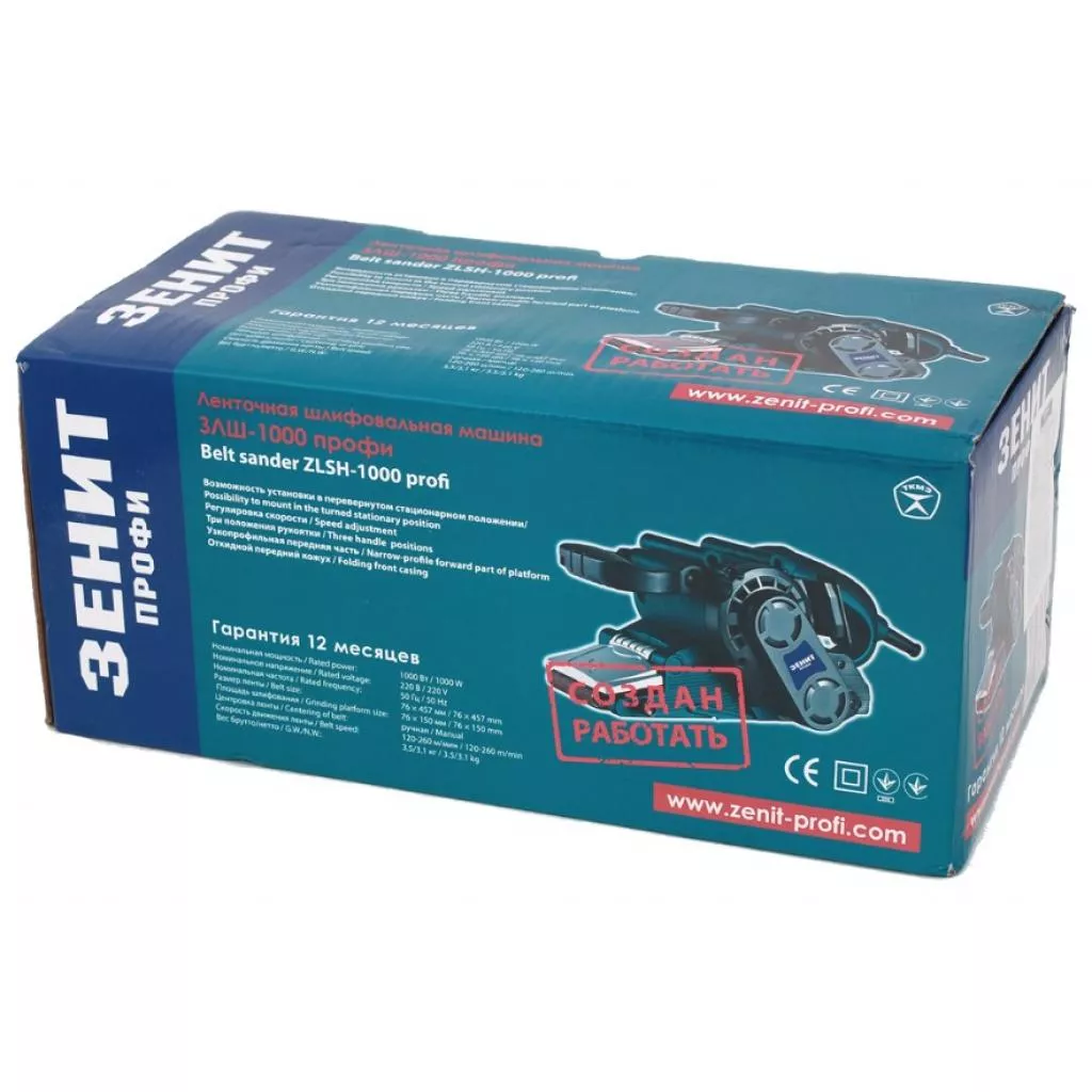 Ленточная шлифмашина ЗЛШ-1000 из линейки Профи компании Зенит мощностью 1.0 кВт, гарантирует высокую производительность и предназначена для выполнения разнообразных шлифовальных работ: