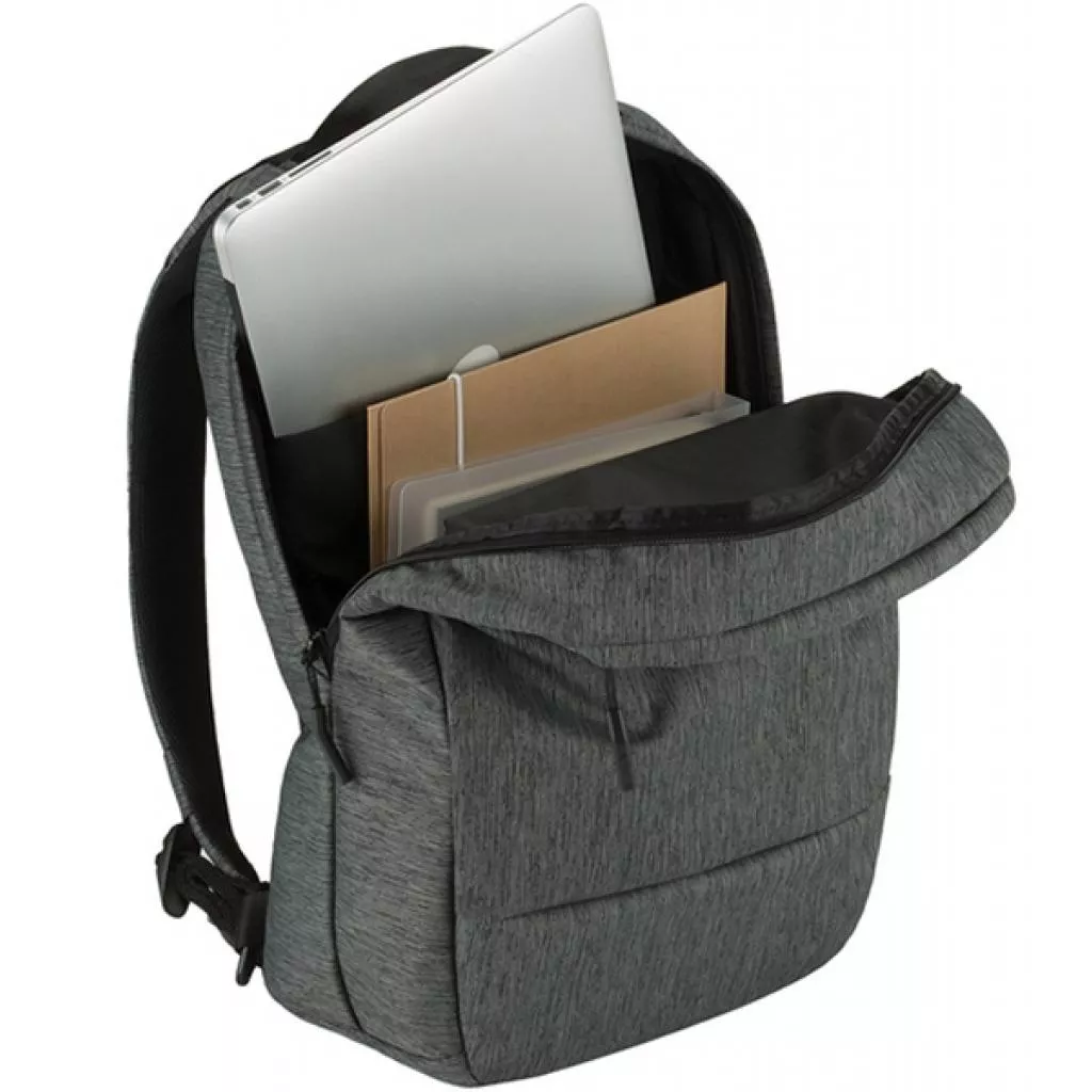 Рюкзак оснащен и укомплектован регулируемыми ремнями с воздушной сеткой и плотной спинкой. Внутренняя часть состоит из одного большого отделения, где имеется карман для ноутбука с флисовой подкладкой, а также проложенный слот для планшета. Передний отсек рюкзака оборудован базовым органайзером, где вдоволь места для ручек, чехла для очков и других необходимых аксессуаров. Сверху расположен специальный карман для хранения смартфона.