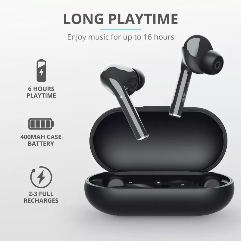 Поставляемый в комплекте чехол также служит зарядным устройством. Просто поместите наушники внутрь, и они начнут заряжаться, в результате чего общее время воспроизведения составит до 16 часов.
