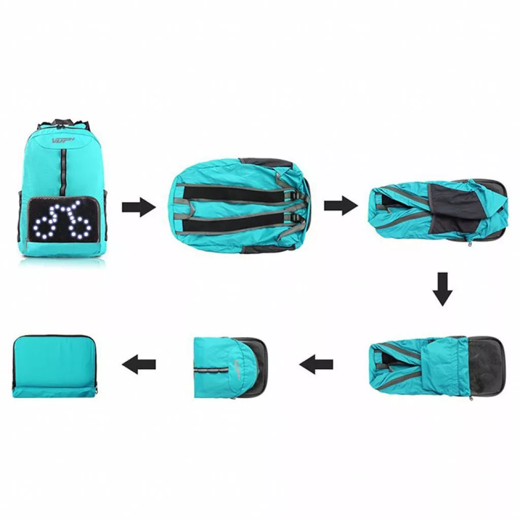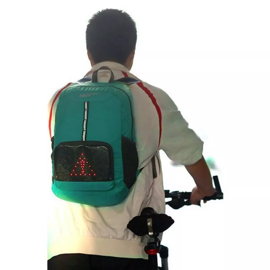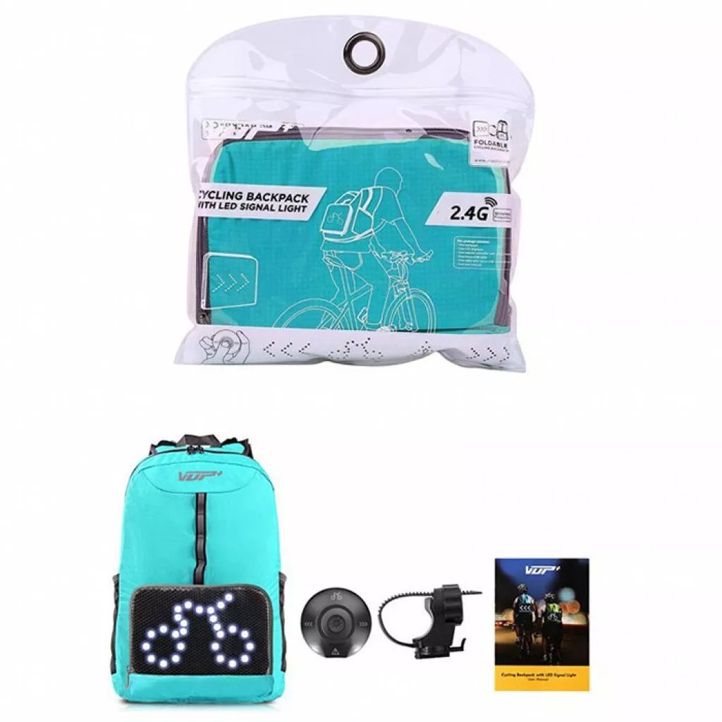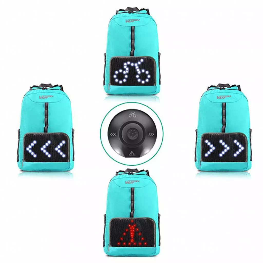 Четыре светодиодных сигнала: езда на велосипеде, левый и правый поворот, внимание. Они привлекут вимание водителей и обеспечат безопасность. Легкий вес (365 г) и складная конструкция: он сохраняет свою энергию на открытом воздухе, складывая пакет в свой собственный карман, чтобы избежать лишнего багажа. прочный и надежный и стабильный и водонепроницаемый: рюкзак изготовлен из водонепроницаемого нейлона тканевого материала, он обеспечивает продолжительную работу.