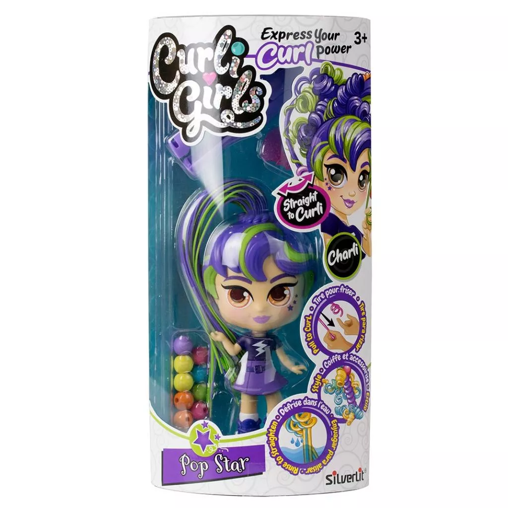 Встречайте модных куколок CURLIGIRLS! Они имеют необычные волосы – волшебные локоны, которые мгновенно завиваются, если их потянуть. Чем дольше тянете локон, тем сильнее он завивается. Создавайте неповторимые причёски с украшениями – это так просто!