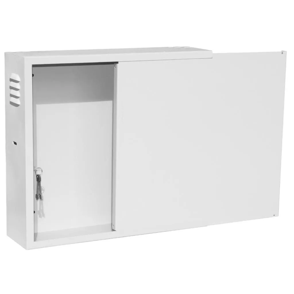 Антивандальный бокс БК-550-З-1-2U устанавливается в местах общественного доступа. Цельносварная конструкция из листовой стали обладает необходимой прочностью и жесткостью для защиты от краж и повреждений специализированного оборудования. Дверца пенального типа отодвигается в левую сторону и запирается надежным сувальдным замком. Данная модель предназначена для внутренней установки. Кабельные вводы специального вида препятствуют хищению проводов. Для стабильной работы электронных компонентов в стенках бокса предусмотрены вентиляционные решетки, обеспечивающие охлаждение. Допускается статическая нагрузка в пределах 60 кг.