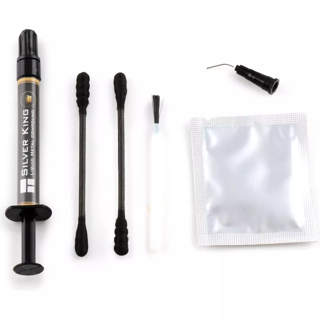 Thermalright Silver King — Это первая термопаста, состоящая из 100% жидкого металлического сплава. Это жидкость при комнатной температуре (например, ртуть), но она абсолютно нетоксична и обладает высокой увлажняющей способностью для нескольких материалов, кроме алюминия. Thermalright Silver King особенно рекомендуется для никелированной меди.