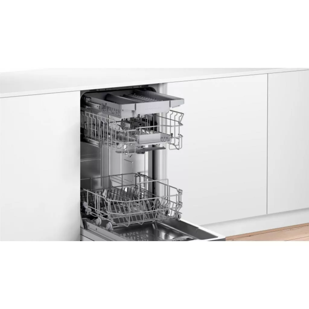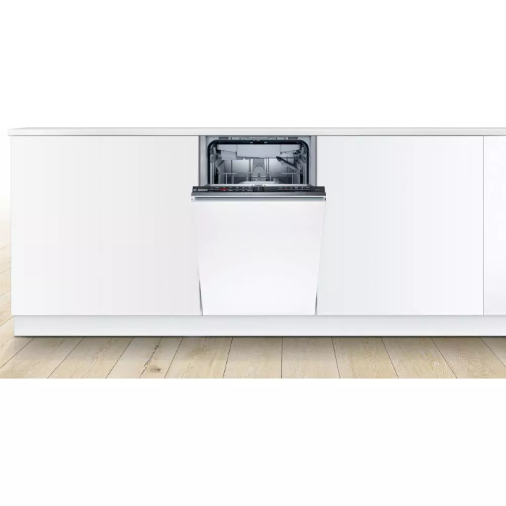 Посудомоечная машина Bosch SPV2XMX01E стала идеальным прибором для установки на кухне. Она не занимает много места, т.к. ее ширина равна всего лишь 45 см. Выбор ниши для установки такой техники несложен. Она нейтрально вписывается в общие концепции оформления, поэтому вам будет несложно внедрить технику в стиль конкретного помещения. Гладкий корпус без каких-либо отделочных деталей – самое то.