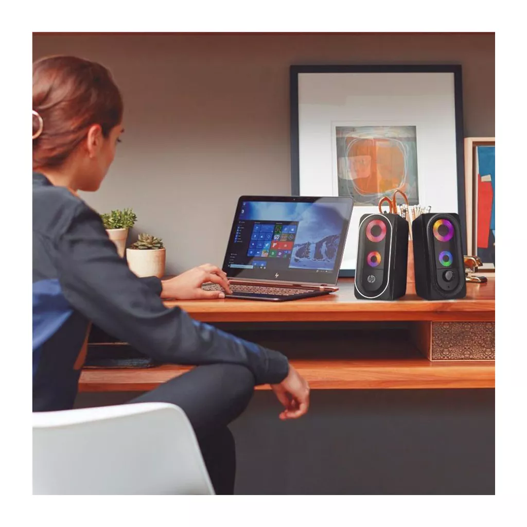 Высококачественные стереодинамики HP обеспечивают четкий и чистый звук. Они питаются от USB и не требуют внешнего источника питания. С подсветкой RGB.