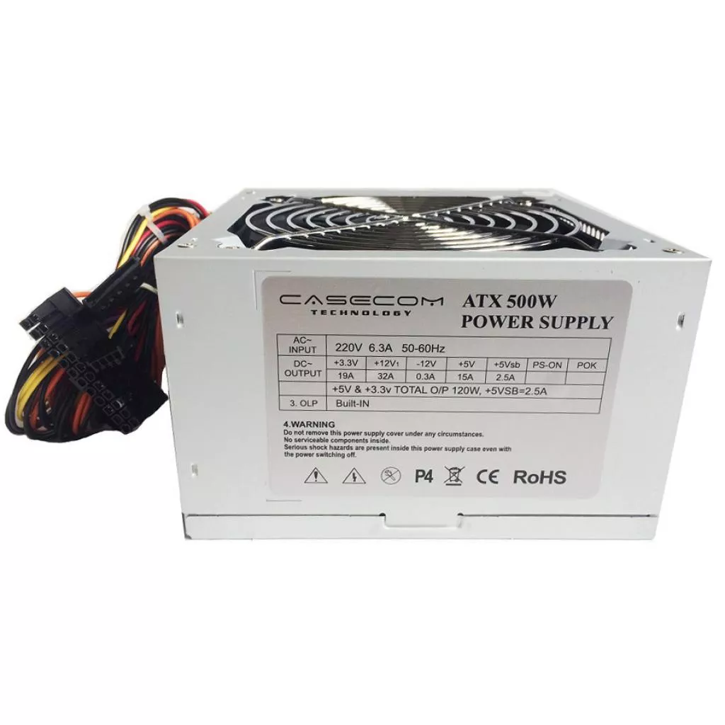 CASECOM 500W (CM 500 ATX) представляет собой блок питания мощностью 500 Вт. Устанавливайте многочисленные требовательные к питанию компоненты без риска отказа системы. Блок оснащен и укомплектован кулером, который благодаря увеличенному размеру и меньшей частоте вращения, эффективно охлаждает БП и при этом остается малошумным. Основным параметром компьютерного блока питания является максимально возможная мощность, отдаваемая в нагрузку. У данной модели она составляет 500W, что обеспечит питанием все элементы систем среднего уровня производительности.