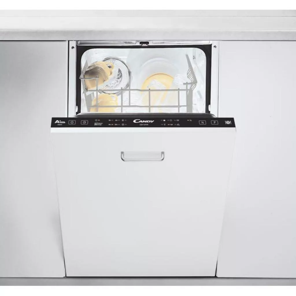 Полновстраиваемая посудомоечная машина Candy CDI 1L949 с сушкой конденсационного типа. 6 программ дают возможность выбрать наиболее наиболее удобный тип мытья, ополаскивания и сушки посуды. В модели установлена полная защита от протечек и система умных сенсоров. В комплектацию изделия входят индикаторы отсутствия соли и ополаскивателя. Полная загрузка — 9 комплектов посуды.