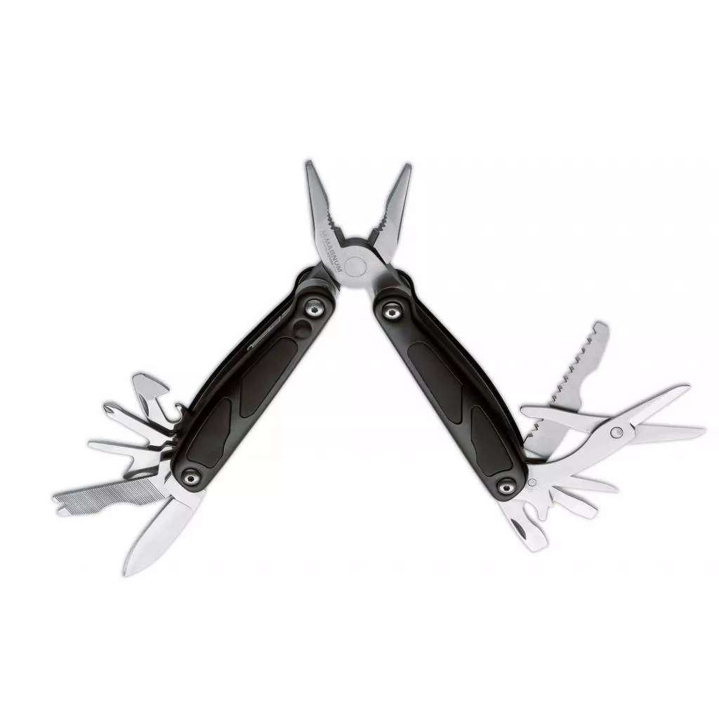 Данные многоперечень функций и возможностейьные инструменты - мультитулы, дают возможность иметь при себе целую мастерскую при размерах карманного ножа. Каракас изготовлен из нержавеющей стали. На него установлены накладки из алюминия с титановым покрытием, устойчивым к коррозии и механическому воздействию. Для удобства в удержании в накладках также есть пластиковые вставки. Модели Minigrip и Maxigrip предлагают базовый и расширенные набор инструментов соответственно. Причем, вторая модель дополнительно оснащен и укомплектована фонариком.