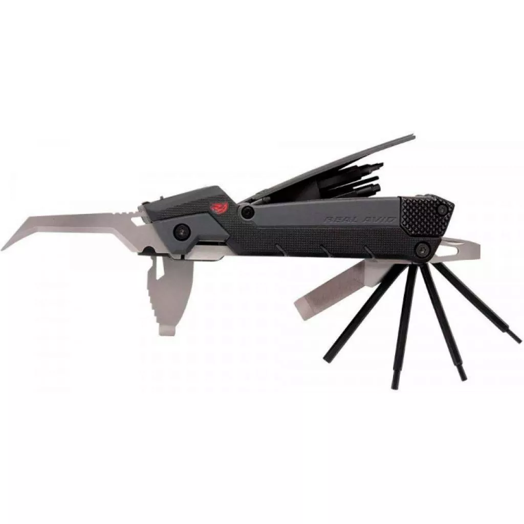 Разработан специально для винтовок и гладкоствольного оружия, мультитул Gun Tool Pro вмещает в себе 30 инструментов. Мульти-инструмент оснащен и укомплектован двумя пилками, ножом с клинком claw-point и съемным магнитным контейнером для хранения бит и штифтов. Немаловажным преимуществом данного девайса является наличие ключа для чоков, который подходит для самых популярных калибров гладкоствольных ружей.