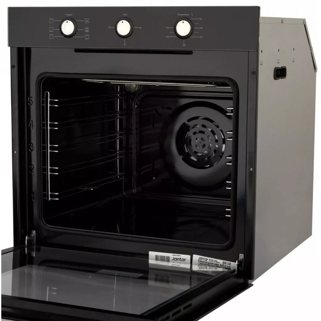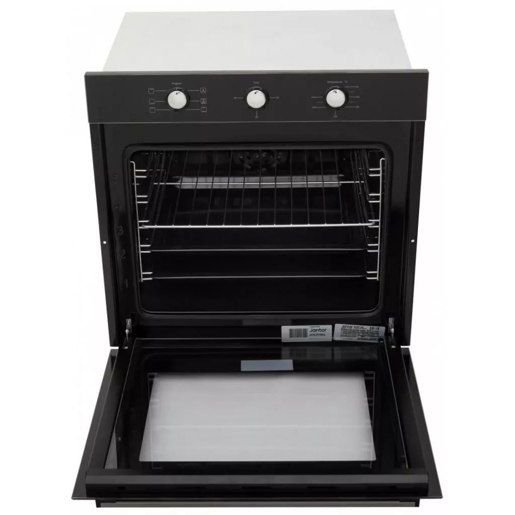 Jantar GFP 6006 BL имеет шесть режимов приготовления. Среди них есть верхнее и нижнее нагревание, верхнее+ нижнее нагревание, верхнее + нижнее нагревание + конвекция, а также гриль и разморозка. В духовке присутствуют хромированные съемные направляющие, обеспечивающие стойкость протвиня, которые можно мыть в посудомоечной машине. Мощность работы устройства составляет 2250 Вт. максимально возможная температура нагрева духовки может доходить до 270? С.