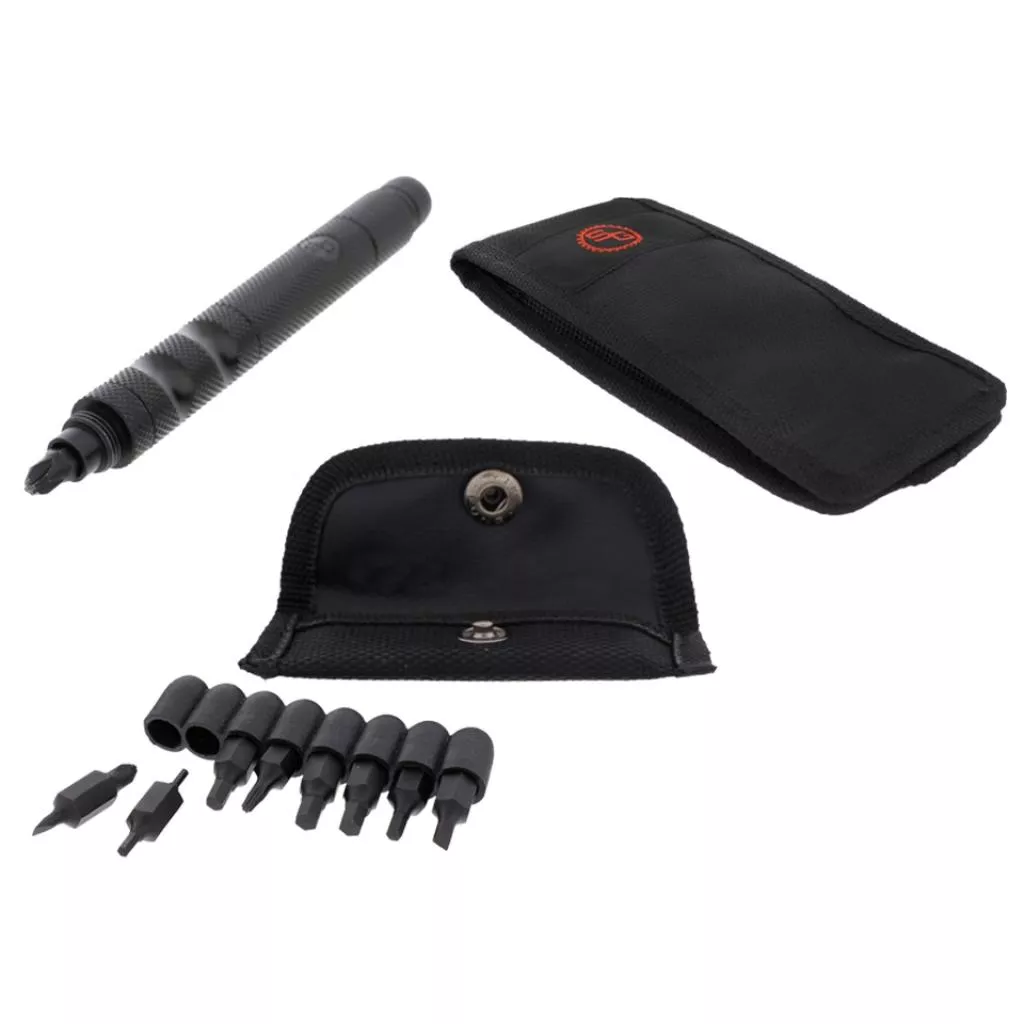 Подробнее о доставке| Инструменты в комплекте | 9 двусторонних бит из стали марки S2, LED фонарик, мини ломик, Нож, Открывалка для бутылок, скребок, стеклобой, чехол для бит, шестигранник |