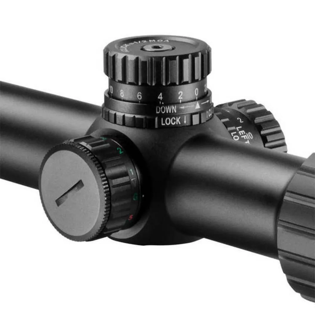 Барабаны ввода поправок по вертикали и горизонтали у прицела открытые, сконструированы по тактической схеме, и имеют цену деления 0.5 МОА. Такая тактическая конструкция дает возможность легко вносить необходимые поправки по ходу стрельбы, что особо актуально при стрельбе на дальние дистанции. Для того, чтоб настройки случайно не сбивались во время стрельбы или транспортировки, барабаны снабжены системой фиксации. Также конструкцией предусмотрена возможность калибровки барабанов для фиксации начальной точки ввода поправок на отметке "ноль".