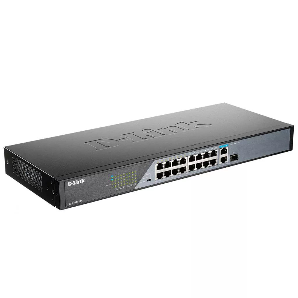 D-Link DSS-100E-18P - неуправляемый коммутатор, который оснащен и укомплектован 16 портами 10 / 100Base-TX с поддержкой PoE, 1 портом 10/100 / 1000Base-T и 1 комбо-портом 100 / 1000Base-T / SFP.