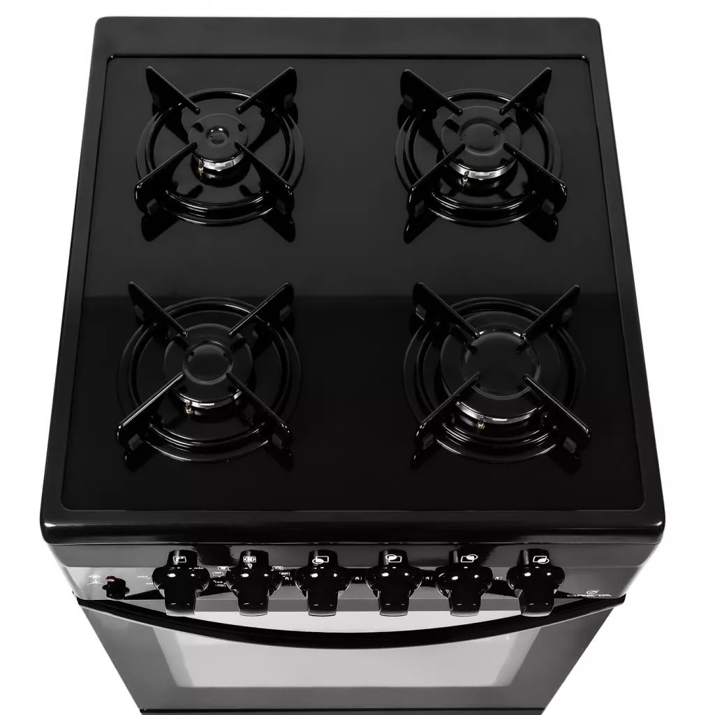 Модель выполнена в современном лаконичном дизайне, благодаря которому она отлично впишется в интерьер Ппрактически любой кухни. Эргономичные элементы управления расположены классическим способом — на передней части плиты над дверцей духовки.