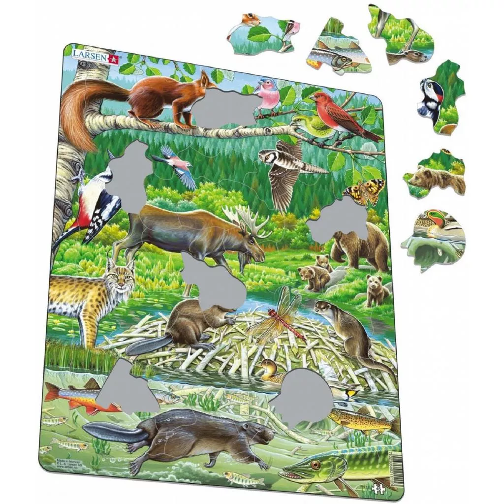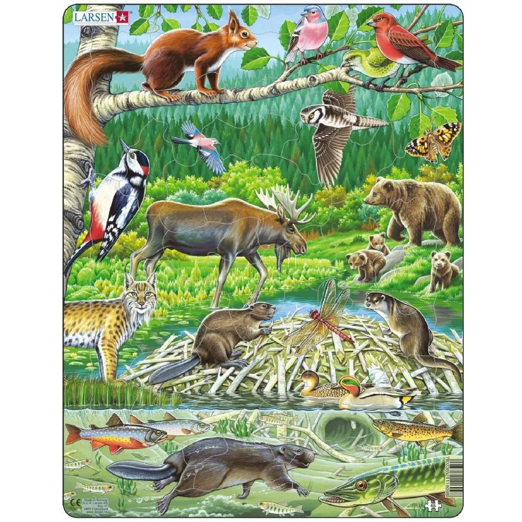 Леса Севера, это не безжизненные пространства, там обитает множество животных, птиц, а в реках разнообразные рыбы. Найди тех, которые тебе знакомы собрав пазл Larsen.