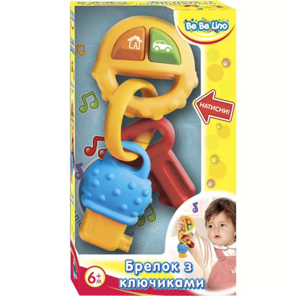 Развивающая игрушка BeBeLino Брелок с ключиками желтый (57049-3) выполнена из безопасного пластика. Ключики имеют разную структуру для развития моторики, а также имеются кнопочки с забавными мелодиями для большего веселья и развития слуха и причинно-следственных понятий. Вся продукция BeBeLino произведена с любовью к детям и имеет развивающую и воспитательную ценность. Рекомендовано для детей от 6 месяцев.