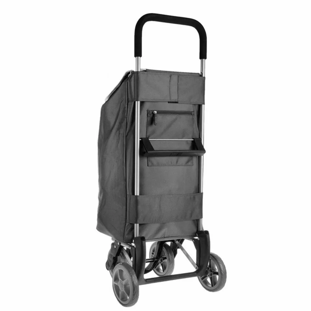Классическая сумка-тележка Gimi Twin оснащен и укомплектована четырехколесным шасси, которое дает возможность одинаково удобно катить сумку-тележку как перед собой, так и за собой, благодаря тому, что передние колеса могут быть подняты или опущены при необходимости. Модель обладает сумкой вместительностью 56 литров и характеризуется нагрузкой на шасси до 30 кг, что дает возможность полноценно отправляться за покупками для всей семьи. прочный и надежный и стабильный полиэстеровый, водозащищенный материал сумки дает возможность защитить содержимое от внешних неблагоприятных условий будь то дождь или снег. Удобная широкая горловина стягивается стяжным шнуром с фиксатором, при этом дополнительно прикрывается защитным клапаном с магнитной кнопкой. На клапане находиться небольшой карман для мелких предметов, которые будут сохранены при помощи замка-молнии. На тыльной стороне сумки размещен карман на молнии для доступа к необходимым вещам (кошелек, проездной, ключи, смартфон).