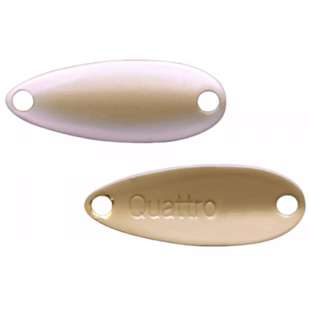 Jackall Quattro имеет узкое тело и выраженный продольный изгиб. Благодаря использованию толстого листа алюминия, блесна, при сравнительно небольших габаритах, обладает приличной массой.